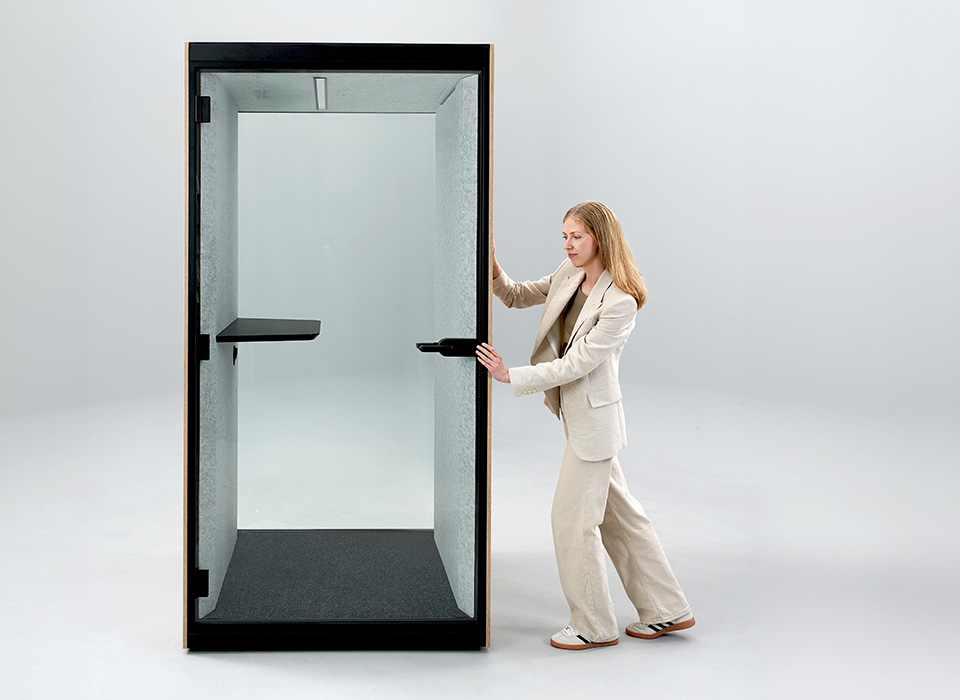 Die SONUS S Akustikkabinen bieten eine hervorragende Schalldämmung und schaffen ein angenehmes und ruhiges Umfeld. Die Akustikkabine ist nach ISO 23351-1:2020 als Schallschutzklasse B eingestuft. Mit geschlossener SONUS S Tür sind Sie vor störenden Bürogeräuschen geschützt und Ihre privaten Gespräche bleiben vertraulich.