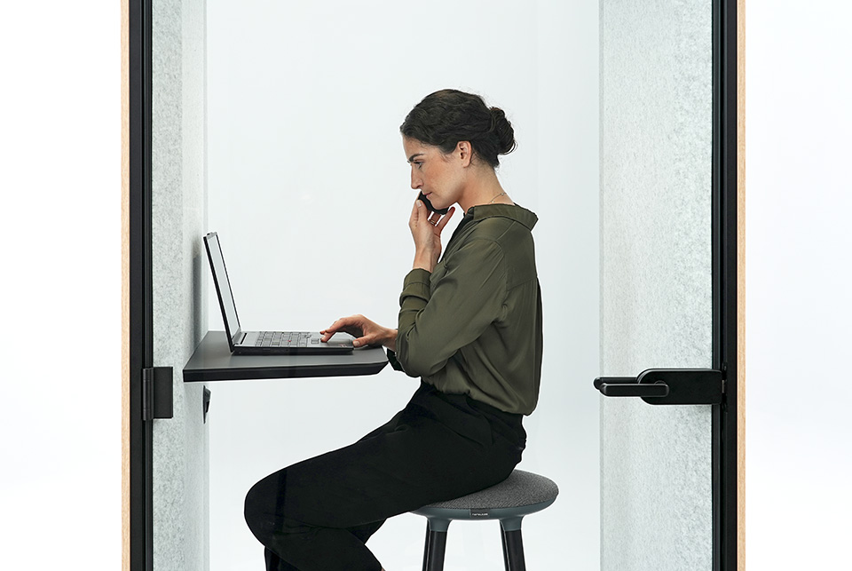SONUS S wurde entwickelt, um den Mitarbeitern ein Arbeitsumfeld zu bieten, das nicht nur komfortabel und ästhetisch ansprechend, sondern auch ergonomisch ist. Die Kabine ist geräumig, so dass Sie sich frei und uneingeschränkt fühlen können. Benutzen Sie Ihren Laptop ganz einfach und platzieren Sie Ihre wichtigsten Utensilien bequem auf der Tischplatte Darunter befindet sich eine intuitiv zugängliche, integrierte Steckdose, die keinen Platz in Ihrem Arbeitsbereich beansprucht. Das integrierte automatische Belüftungs- und Beleuchtungssystem funktioniert reibungslos und gewährleistet ein optimales Klima für beste Arbeitsbedingungen. So können sich die Benutzer auf das konzentrieren, was am wichtigsten ist: qualitativ hohe Gespräche oder individuelle Aufgaben. Die Benutzer können die Belüftung und die Beleuchtungsintensität nach Bedarf einstellen.