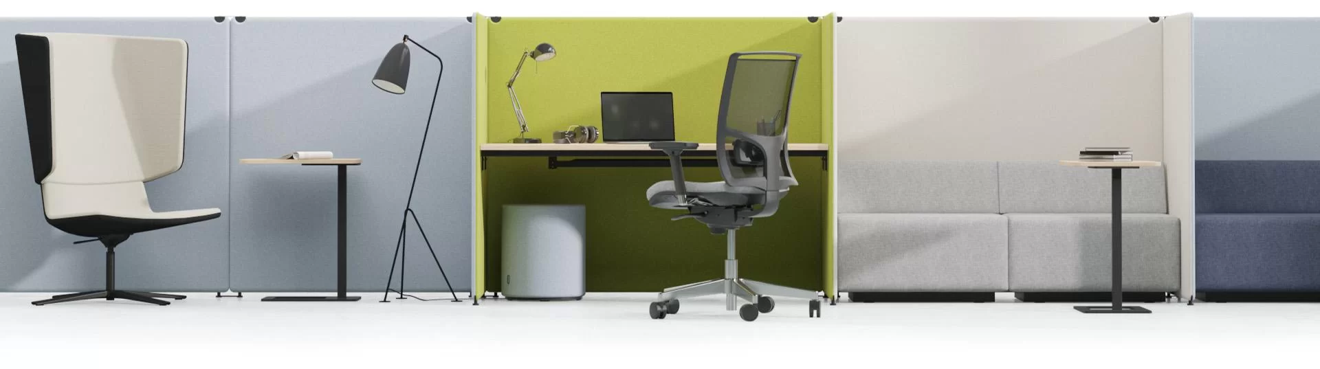 Sie brauchen separate, individuelle Arbeitsplätze oder müssen Arbeitsbereiche mit unterschiedlichen Funktionen in einem Raum schaffen? Kreieren Sie Ihren gewünschten MY SPACE aus einer Kombination von nur drei Arten von akustisch wirksamen Sichtblenden. Passen Sie sich schnell an sich ändernde Bedürfnisse an, indem Sie die Struktur einfach und schnell umbauen.