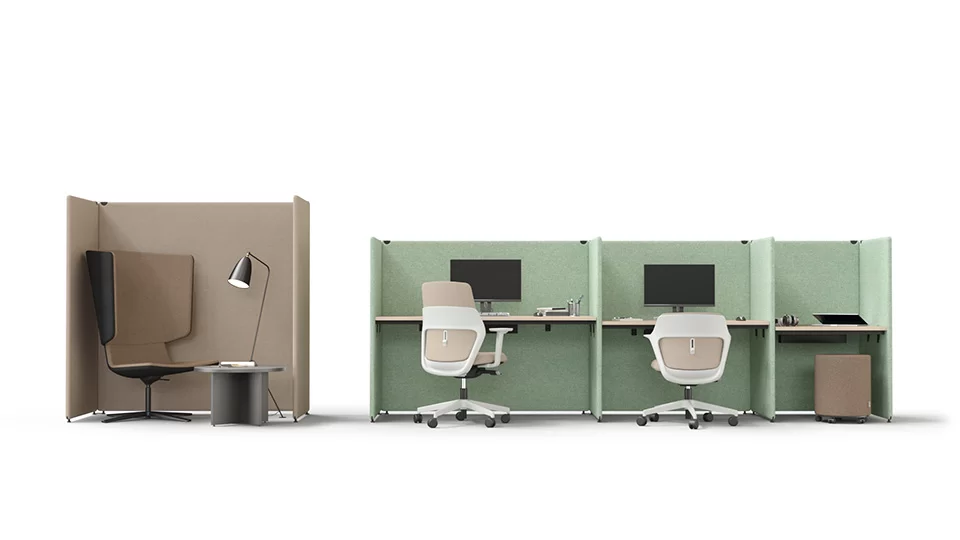 MY SPACE ist eine grossartige Wahl, um das allgemeine Lärm-Niveau im Büroraum zu senken, da die akustisch wirksamen Sichtblenden mit einem speziellen Schall-absorbierenden Schaum gefüllt und mit einem Stoffüberzug Ihrer Wahl bezogen sind. Dieses Produkt erfüllt die Anforderungen der akustischen Klasse C und wurde von einem unabhängigen Akustik-Labor getestet.