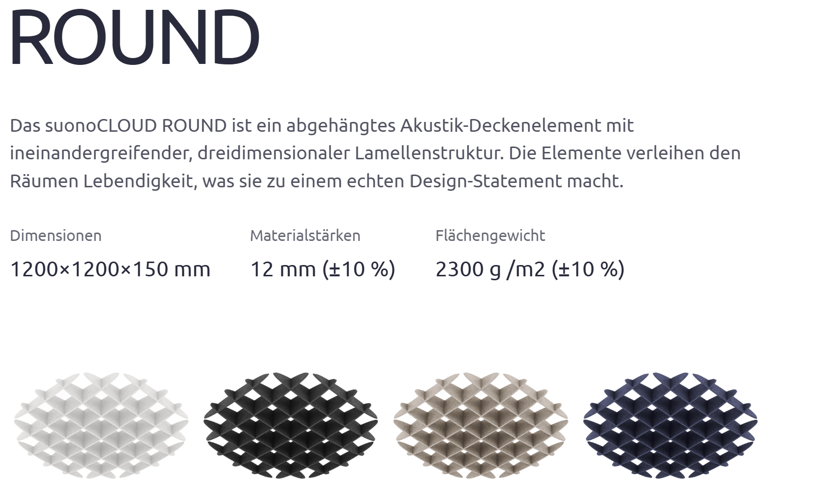 Das Deckenelement bietet eine akustisch hocheffiziente und ästhetische Lösung und sorgt für Lebendigkeit und Textur in allen Räumen. Das suonoCLOUD-Deckenelement ist ein echtes Up-Cycling-Produkt und zeichnet sich durch sein modernes und funktionelles Design sowie seine Langlebigkeit aus. Hergestellt aus unserem hochwertigen suonoBOARD, mit exzellenten Schallabsorbtionswerten und einem Recyclinganteil von über 50 %, bestechen unsere Produkte mit organischem Charakter durch die homogene Oberflächenstruktur und Farbgebung. Hergestellt aus 100 % PET-Fasern mit filzartiger Haptik.