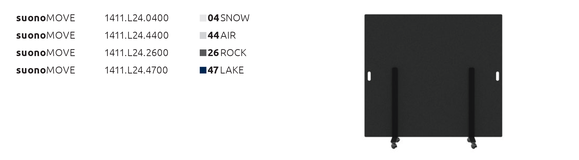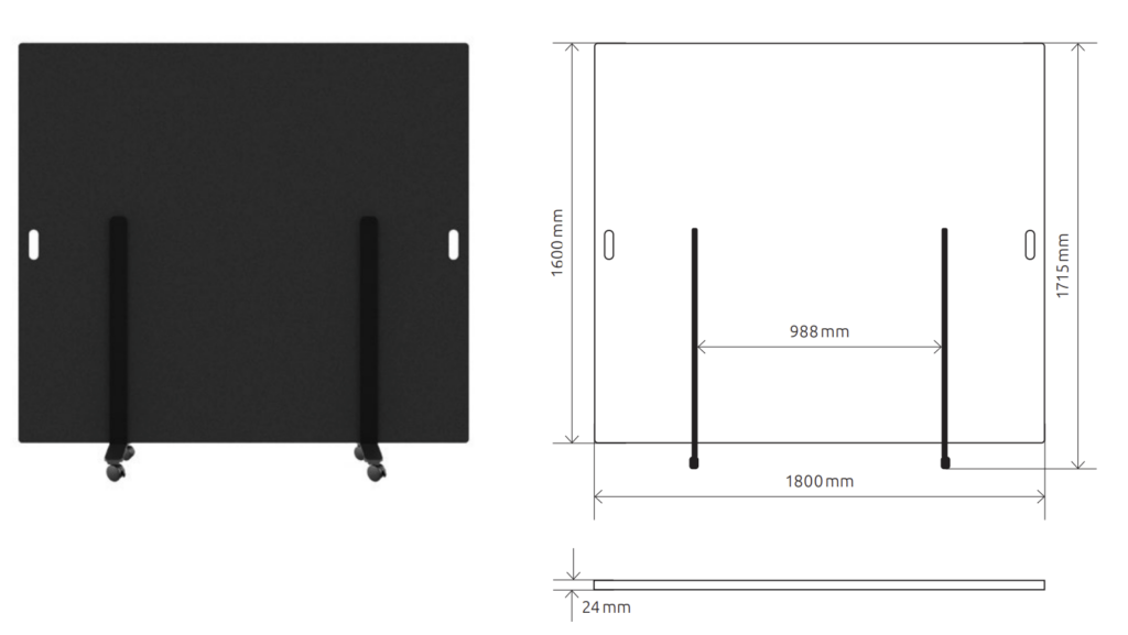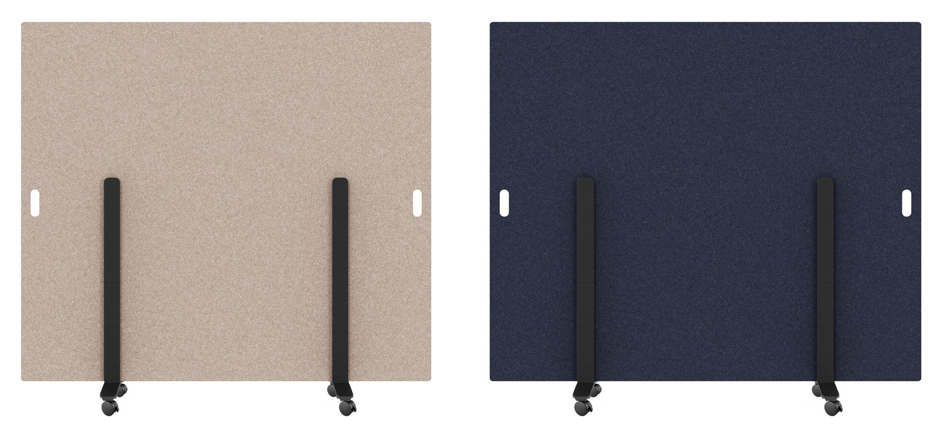Die suonoMOVE ist eine freistehende Trennwand auf Rollen mit Stopper, hergestellt aus 100 % PET Fasern mit filzartiger Haptik, für optische und akustische Privatsphäre.