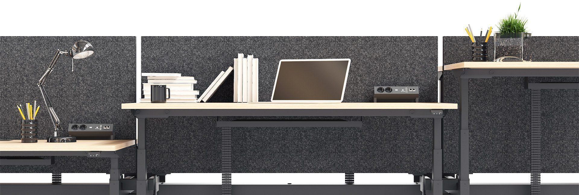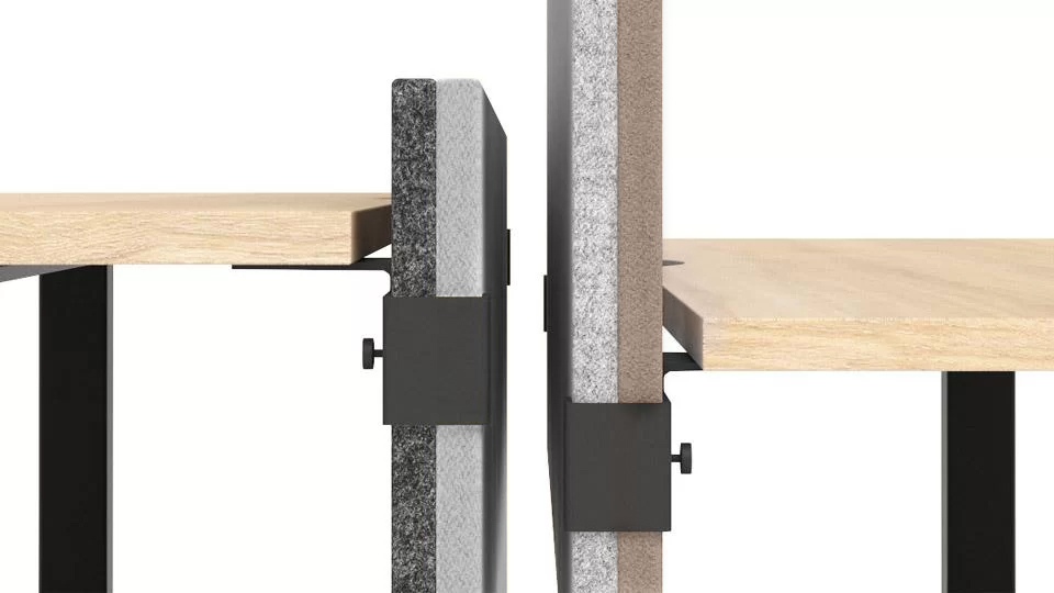 MODUS Abschirmungen sind für die Einzelschreibtische ONE, ONE H, EASY, T-EASY, NOVA A und MOTION entwickelt worden. Sie bieten Schallabsorption der Klasse D, damit Ihre Mitarbeiter den akustischen Komfort definitiv genießen können. Die Höhe der akustisch wirksamen Sichtblenden kann durch einfaches Lösen und Feststellen der metallenen Befestigungen ganz einfach an Ihre Bedürfnisse angepasst werden.