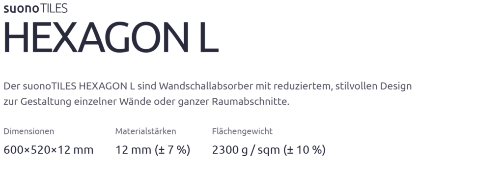 Die suonoTILES sind Wandschallabsorber mit reduziertem, stilvollen Design zur Gestaltung einzelner Wände oder ganzer Raumabschnitte. Die geometrischen Formen können frei miteinander kombiniert werden. Die suonoTILES-Wandschallabsorber sind echte Up-Cycling-Produkte und zeichnen sich durch ihr modernes und funktionelles Design sowie ihre Langlebigkeit aus. Hergestellt aus unserem hochwertigen suonoBOARD, mit exzellenten Schallabsorbtionswerten und einem Recyclinganteil von über 50 %, bestechen unsere Produkte mit organischem Charakter durch die homogene Oberflächenstruktur und Farbgebung.