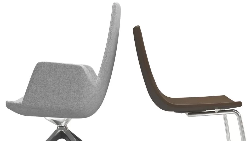 Die Besucherstühle NORTH CAPE sind in zwei verschiedenen Größen erhältlich, um den unterschiedlichen Anforderungen am besten gerecht zu werden. Die Stühle mit niedriger Rückenlehne sind ohne Armlehnen und eignen sich perfekt zum bequemen Sitzen in der Lounge oder in kleineren Tagungsräumen. Für geräumigere Besprechungsräume, in denen längere oder vielleicht sehr wichtige und repräsentative Besprechungen stattfinden, wurden Konferenzstühle angepasst, deren Sitzteil die Größe und Proportionen des Arbeitsstuhls sowie die Auswahl der Armlehnen wiederholt.