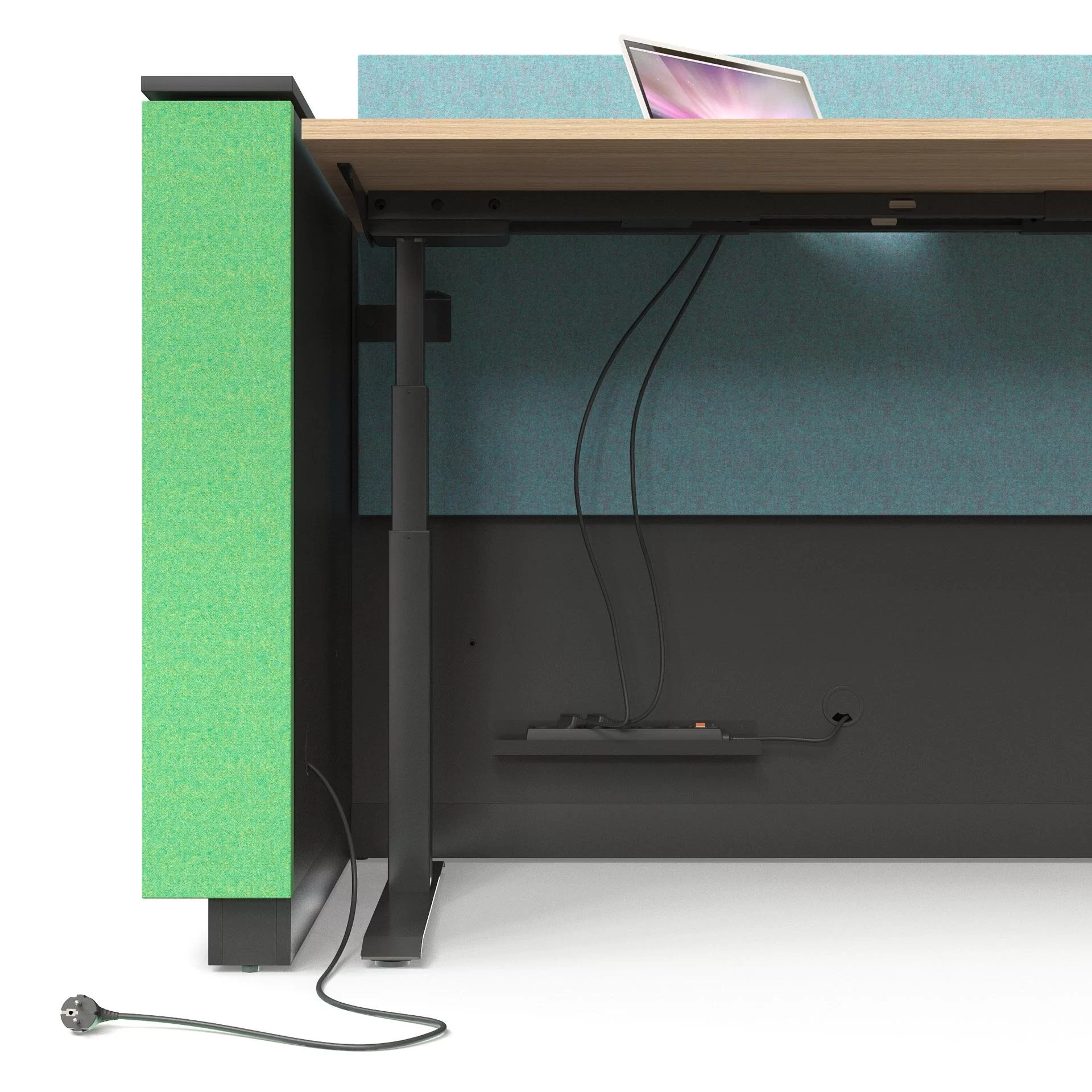 DOMINO Empfangsmöbel sind mit allen Kabelführungslösungen ausgestattet, die für einen ergonomischen Arbeitsplatz notwendig sind. Elektrische und Internetkabel werden Sie nicht stören und Ihr Arbeitsbereich auf dem Tisch ist aufgeräumt und sieht ästhetisch und angenehm aus.
