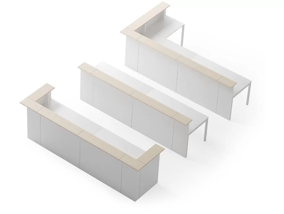 Unsere Empfangsmöbelsektionen sind in verschiedenen Formen verfügbar. Wählen Sie eine Kombination, die dem Layout Ihres Büros am besten entspricht.