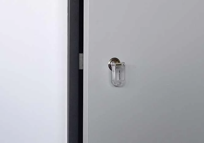 • Das hinter der Tür verborgene Schloss sorgt für ein sauberes und ästhetisches Erscheinungsbild des Schließfachschranks. Es ist die perfekte Option für moderne und minimalistische Büros.