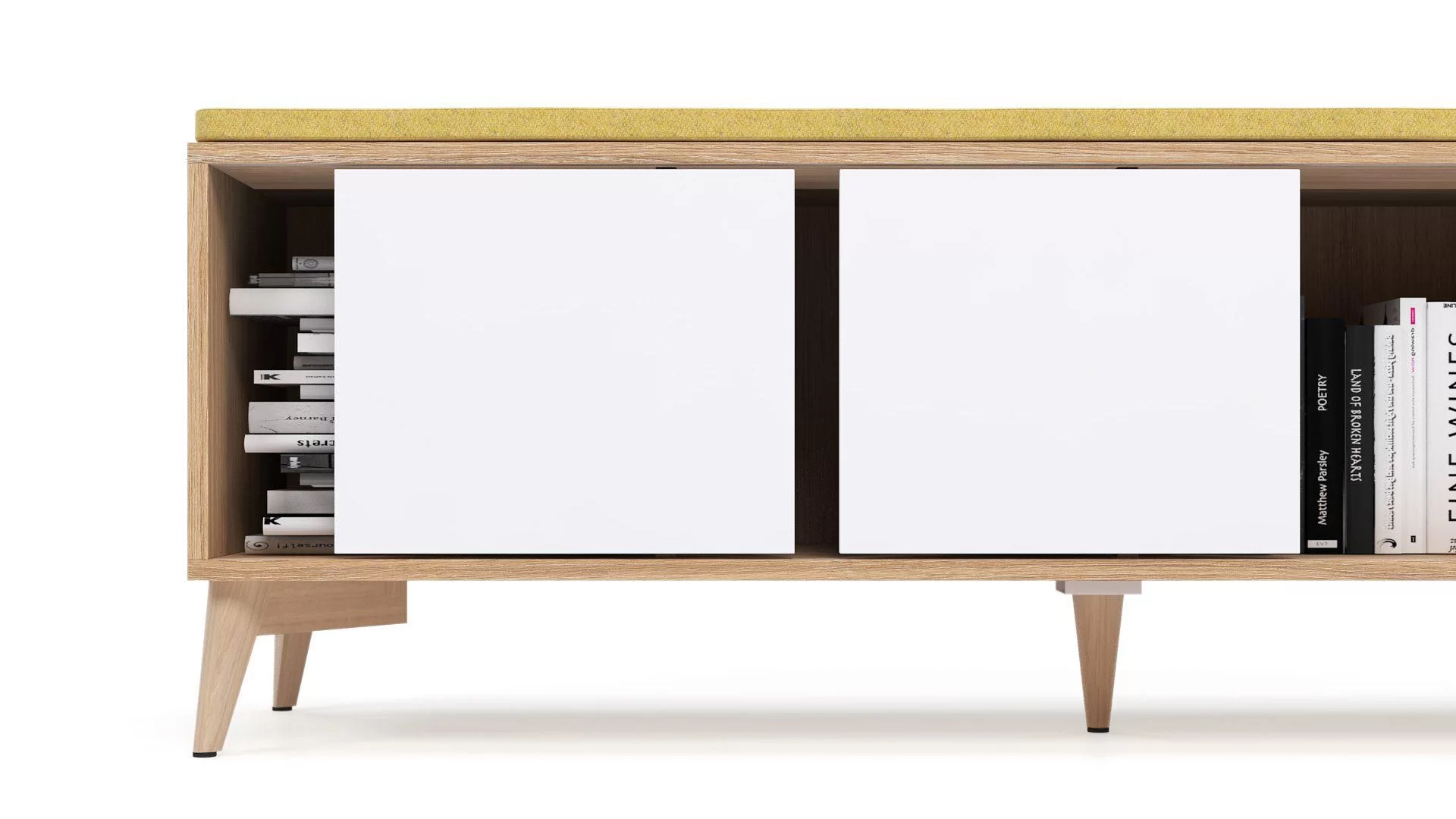 Verschiedene Schranktüren erfüllen verschiedene Funktionen und können gleichzeitig als spielerisches Designelement dienen.