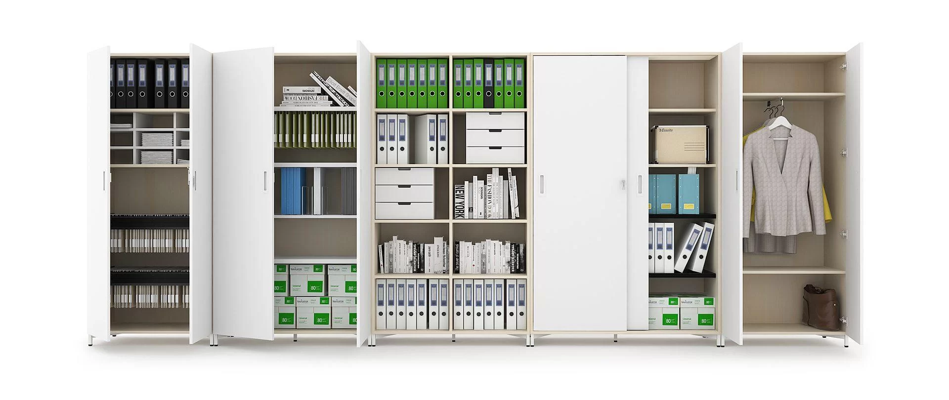 Dieses modulare Schranksystem hilft Ihnen dabei eine gut organisierte und moderne Arbeitsumgebung zu schaffen. Wir bieten eine große Bandbreite an Aktenschranklösungen und Funktionalität, aus der Sie die besten persönlich angepassten Schränke für Ihr Büro wählen oder kreieren können.