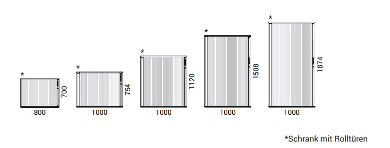 Wir bieten eine grosse Bandbreite an verschiedenen Schranktypen mit verschiedenen Höhen und Breiten an. Unser Sortiment umfasst Bücherschränke, Schränke mit Türen, Schränke mit Rolltüren und Schreibtisch-Schränke.