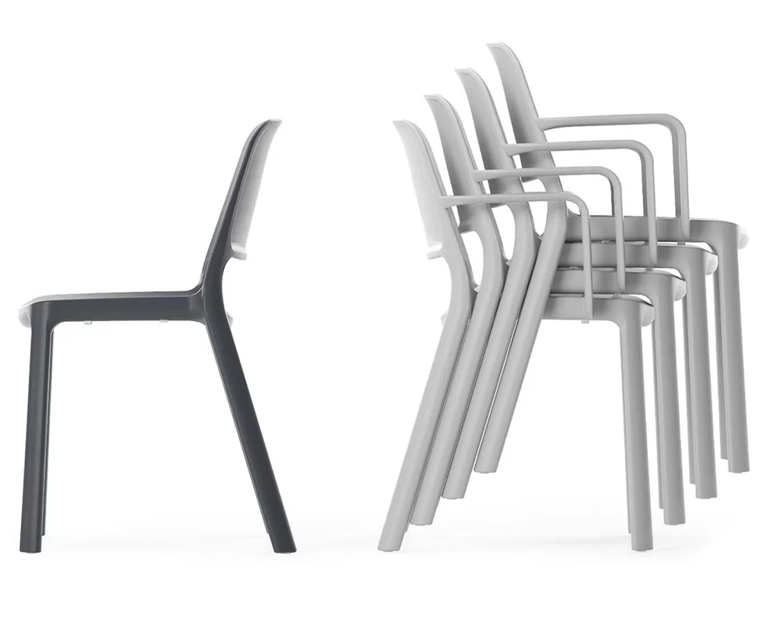 Die POLYTONE-Stühle werden aus hochwertigem Polypropylen-Kunststoff hergestellt. Kunststoff ist eines der vielseitigsten Materialien, das nicht nur wegen seines erschwinglichen Preises, sondern auch aufgrund seiner Pflegeleichtigkeit und Haltbarkeit geschätzt wird. Noch wichtiger ist es, dass Kunststoff ein extrem verformbares Material ist. Dadurch lässt es sich leicht formen, um komplexe Designformen anzunehmen.