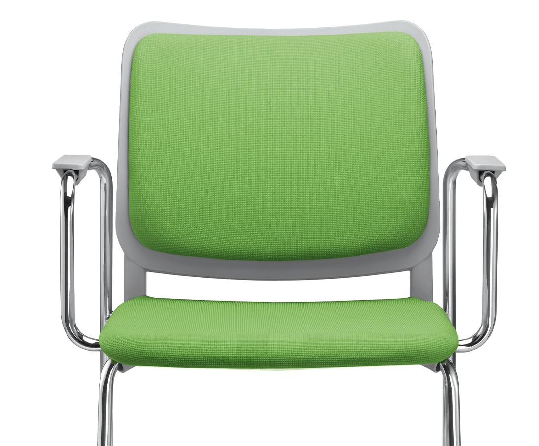Der freitragende Rahmen erzeugt einen federleichten und eleganten Look und ist ideal für Besucherbereiche. Er ist auch für Schulungsräume ideal geeignet, da dieses Design durch Verbindungsstücke einfach in Reihen angeordnet werden können, um eine ordentliche Anordnung im Raum zu erzeugen. Sie können auch bis zu 10 Stühlen hoch gestapelt werden.