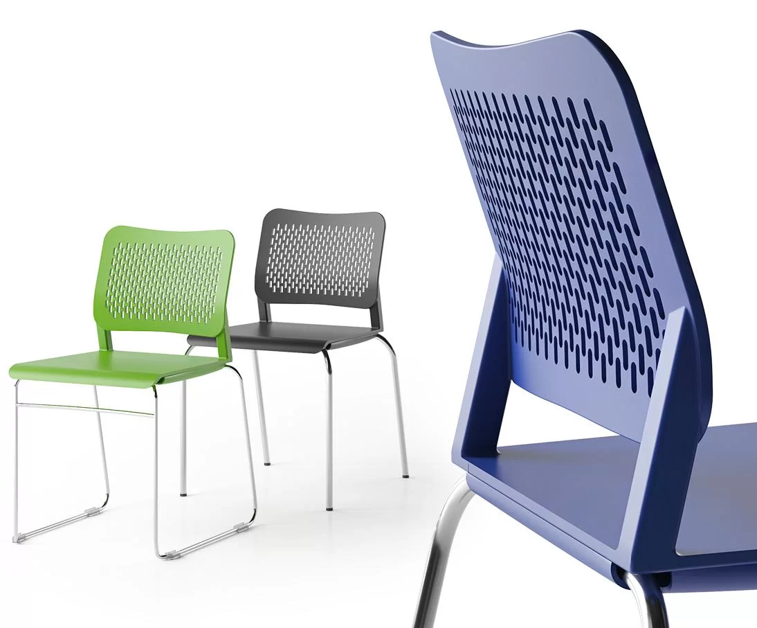 Dieses Design kombiniert eine perforierte Kunststofflehne und eine mit Stoff oder Kunstleder bezogene Sitzfläche, um noch besseren Komfort zu bieten. Sie können verschiedene Kombinationen aus einer Vielzahl von Farben und stylischem Kunststoff-, Stoff- oder Kunstleder-Design erstellen, um Ihr Büro zum Blickfang zu machen.