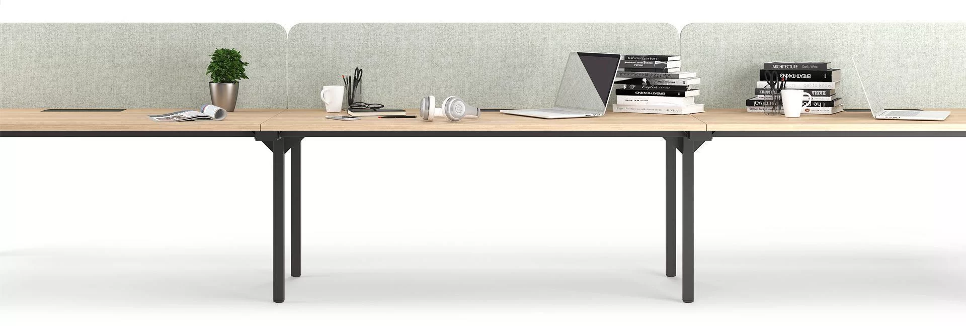 Das Leben im Büro steht nie still: die Anzahl an Mitarbeitern sowie die Natur ihrer Arbeit ändern sich ständig. Sie können auch zwei Bankschreibtische über Ergänzungstrennelemente zusammenfügen und so an die Dynamik in Ihrem Büro anpassen, was es Ihnen erlaubt, die Anzahl an Arbeitsplätzen einfach anzupassen.