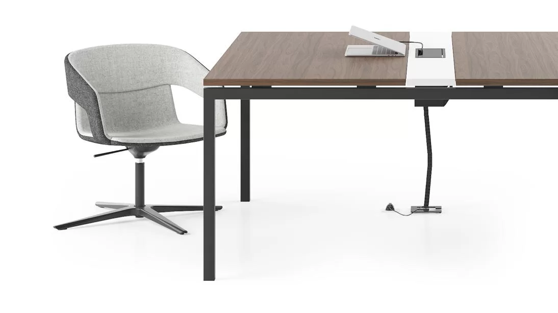 Konferenztische können für 6 bis 12 Personen ausgelegt sein, aber über zusätzliche Seitentafeln kann die gewünschte Anzahl an Arbeitsplätzen eingerichtet werden.