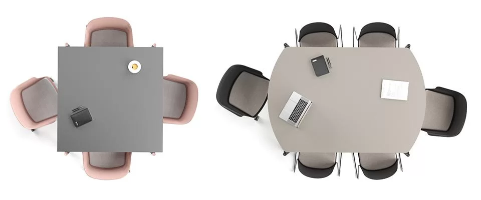 ZEDO-Besprechungstische sind mit eckigen oder abgerundeten Kanten erhältlich. Je nach gewählter Schreibtischgröße können vier bis sechs Personen bequem an einem Schreibtisch zusammenarbeiten.