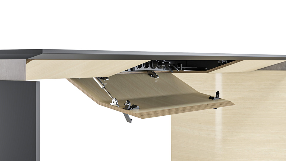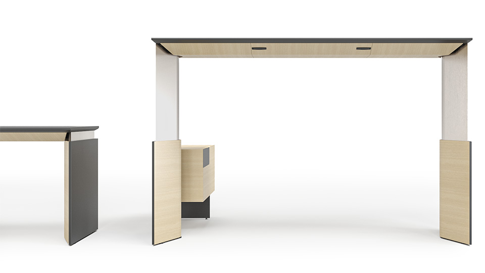 Das MOVE&LEAD Möbelsystem für Führungskräfte kombiniert das Beste aus Ergonomie mit den neuesten Technologien und wurde für aktive Führungskräfte designt. Die Höhe kann zwischen 740 mm und 1.300 mm eingestellt und der Tisch so einfach an die persönlichen Bedürfnisse angepasst werden.