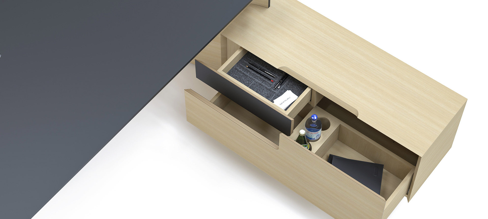 MOVE&LEAD Chefmöbel bieten nicht nur Schreibtische mit fixer oder verstellbarer Höhe, sondern auch Aufbewahrungslösungen, damit Ihre Büroutensilien immer in Reichweite sind. Die Schubladen des Schreibtischschranks haben spezielle Einleger für einen gut organisierten Arbeitsplatz. Mit den verschiedenen Elementen des MOVE&LEAD Möbelsystems können Sie vom Schreibtisch, über Bücherregal, Schränke und Regale einen repräsentativen und funktionellen Arbeitsplatz für Ihre Führungsetage schaffen. Das Möbelsystem MOVE&LEAD wurde entwickelt, um selbst die herausforderndsten Bedürfnisse für Chefbüros zu erfüllen.